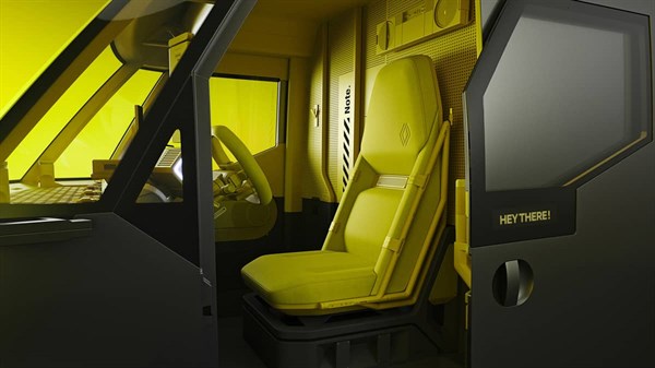 עם מושב נהג מאובטח ומושב מתקפל עבור עובדים נוספים, לרכב הקונספט Renault Estafette יש תא נהג ייחודי. המושב מותקן על גבי פלטפורמה ומאפשר לנהג להסתובב בקלות בתנוחת עמידה עד לגובה של 1.90 מטר.
