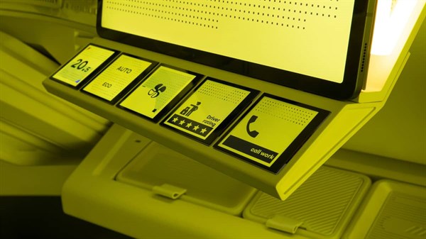 לוח המחוונים כולל שני מסכי תצוגה לנהג, ווידג'טים ומערכת מולטימדיה המותאמת במיוחד לצרכים עסקיים ולתוכנה מסוימת.